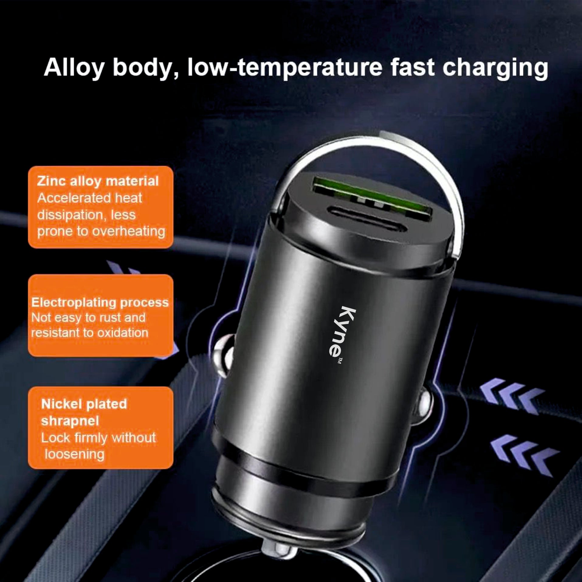 Whether you're on a long road trip or daily commute, the KYNE Mini Matel Super Fast PD Car Charger keeps your devices charged and ready to go. Experience fast, efficient, and safe charging anytime, anywhere! ?⚡